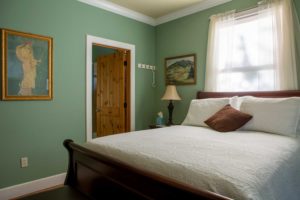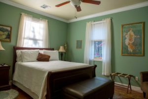 The Bradford Pear room colors are the the white, green and brown of one of our most popular Oklahoma trees. The room is located downstairs and is 12′ x 14′ with a large 3′ x 5′ shower. Bright sunshine is a hallmark of this room. Rate is $145. Home football games, Mom’s weekend, and graduation have a 2 night minimum and the rate is $195/night.