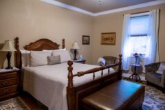 The Dogwood Tree when flowering is a rare and elegant beauty, which is captured with the colors in this suite. The queen size sleigh bed compliments the off white bedding. There is a cozy sitting area and desk in this spacious 14′ x 17′ suite. The on suite bathroom has a separate shower and large soaking tub.